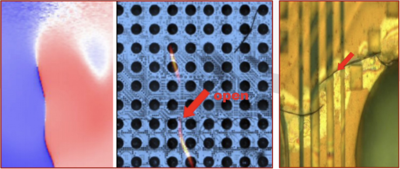 Magma uses Space Domain Reflectometry (SDR), also known as Magnetic Current Imaging, using RF signals to locate the fault. Unlike Time Domain Reflectometry (TDR), SDR will enable you to isolate the open without deprocessing the chip.